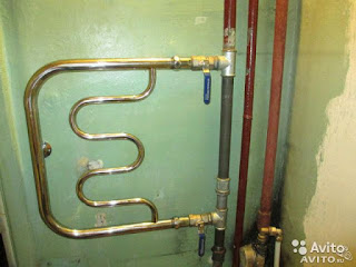 Как видите, проблем уже достаточно, а это самое простое подключение — к системе отопления. Но люди же хотят, чтобы сушилка была тёплой и летом тоже и подсоединяют этот никчемный кусок нержавейки к магистрали горячей воды. Это возможно только в домах с централизованным горячим водоснабжением, если у вас колонка, то сразу надо об этом забыть. Тут проблемы сразу множатся, как запорные краны на трубах. Вот честно, если это не частный загородный дом, я бы такого не городила на свою голову, а купила бы электрический полотенцесушитель.