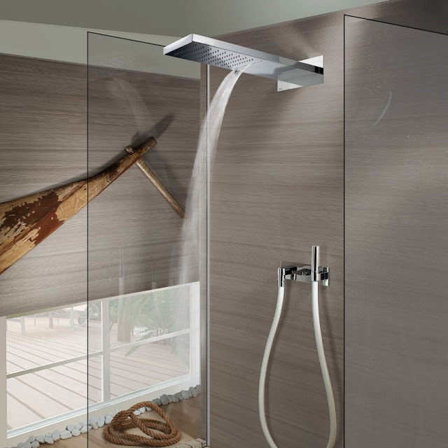Мы рассмотрели полезные возможности тропического душа. А как выглядит такое приспособление в интерьере?